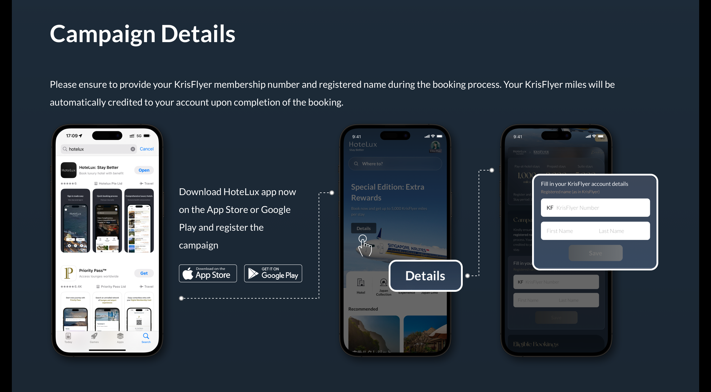 All qualified stays* that meet the requirement of the below-stated campaign booking period and hotel stay period are eligible to receive the bonus KrisFlyer miles provided that their KrisFlyer membership number is also accurately inputted in the campaign landing page on HoteLux app within the campaign registration period.